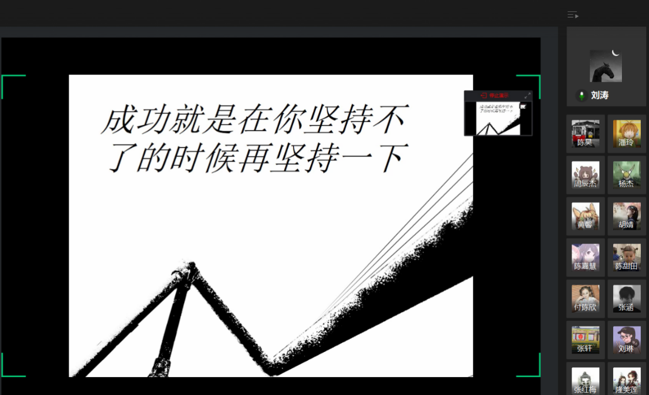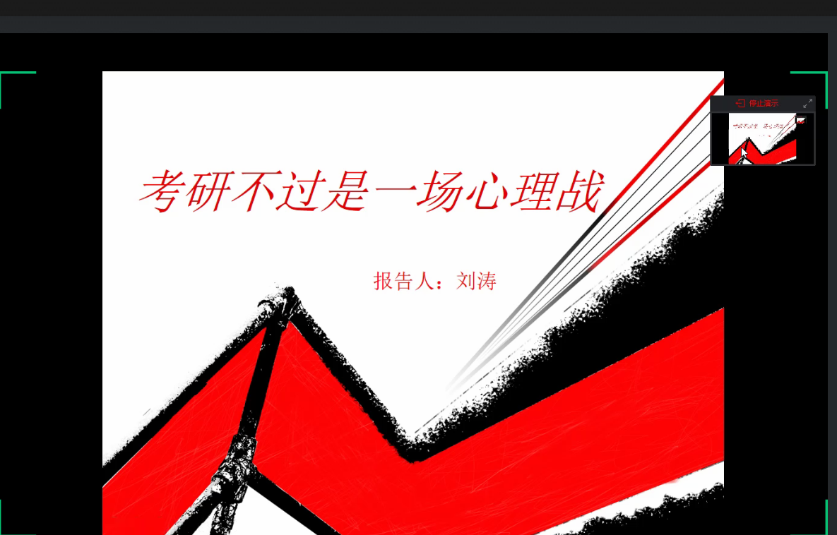 在邓老师向参与本次沙龙的学子,介绍升研活动和升研工作的情况之后,刘涛学长围绕“考研不过一场心理斗争”进行考研经验分享。刘涛学长就“要不要考研”这一问题展开论述,同时说明了数学及英语对于考研的影响。之后他分享了在考研路上的心得并点明了室友、研友及时间管理的重要性。最后学长讲到:“成功就是在你坚持不住的时候再坚持一下。”就员工问题“考研后期应怎样稳住心态”,刘涛学长表示,不要孤军奋战,调好生物钟,总会扛过去的。