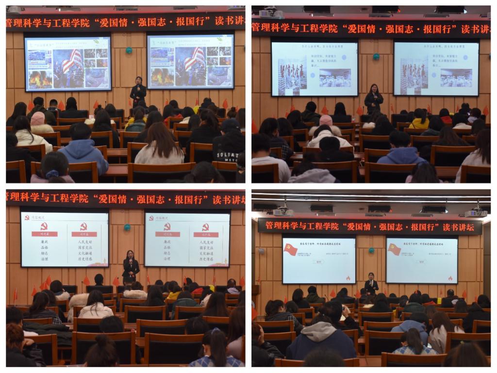 最后由学院邓德敏书记对本次活动进行了总结。他对于每位参赛选手对本次活动所做的努力给予了肯定,并鼓励更多管工学子,多读书、读好书,积极参与到学院的读书讲坛活动中来。邓书记引用“读史,使人明智;读诗,使人明秀;数学,使人精密;科学,让人深刻;伦理,让人庄重”来诚恳地告诫同学们要多读书,广读书,不断地学习。邓书记指出,想要读好一本书,第一是“志”:读书有志向;第二是要有“识”;从初衷来识;第三是“恒”;只要有了恒心,就没有不成功的事。他希望在下次活动中能看到男同学的身影,“红花”与“绿叶”能够均衡相配。
