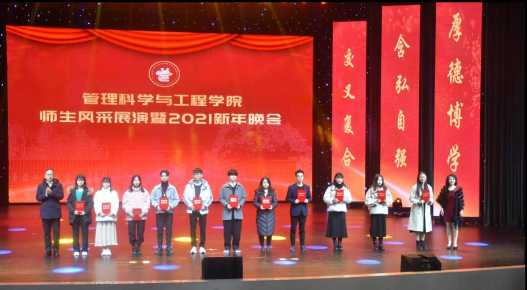 本次晚会表彰了国家奖学金获得者、科学研究年度人物、科技创新年度人物、志愿服务年度人物、学习优秀年度人物。晚会对2020年在教学、科研、管理、联系我们类表现突出以及对学院有突出贡献的教师进行表彰,颁发了徽商奖教金。