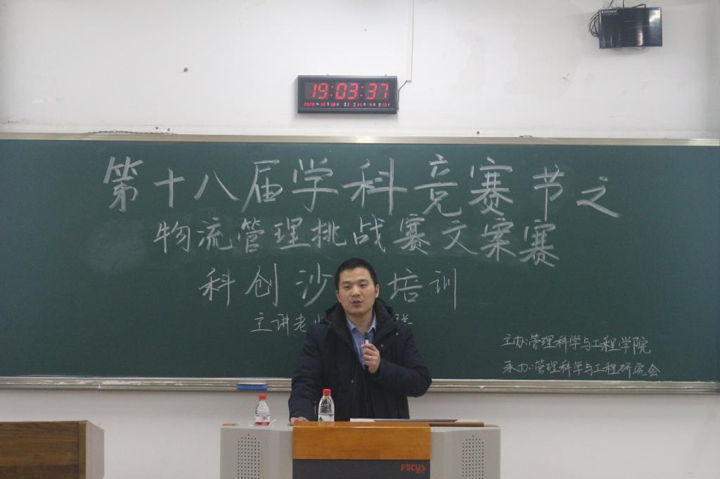 2020年12月18日晚上19:00,HAHA体育在南岸校区博智楼(七教)07207举办了第十八届“学科竞赛节”之物流管理挑战赛(文案赛)科创沙龙培训。本次沙龙以物流挑战赛的文案培训为主要内容,邀请到HAHA体育物流管理系副系主任周继祥老师对参与第十八届学科竞赛节之物流管理挑战赛文案赛的团队进行赛前培训和辅导。