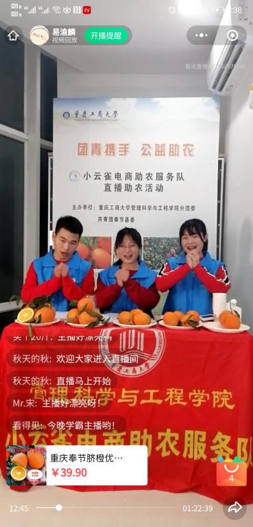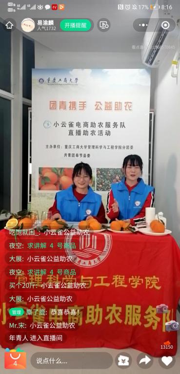 直播结束之后,同学们都大声地欢呼起来,纷纷发表感慨。老员工主播泰辉表示:“能够为家乡的乡村振兴贡献自己的一份力量,我感到无比的骄傲和自豪。”小云雀服务队的吴攀秋说到:“公益电商是我们小云雀的志愿服务活动的特色活动。我们在活动中不仅提升了自己,也实现了自我价值,希望以后能够更多地参加这样的特色活动。”直播技术负责同学易渝麟在直播成功结束之后欣喜地说:“能将专业所学回报社会,我感觉到非常意义。这场直播让我更加热爱我的专业。”