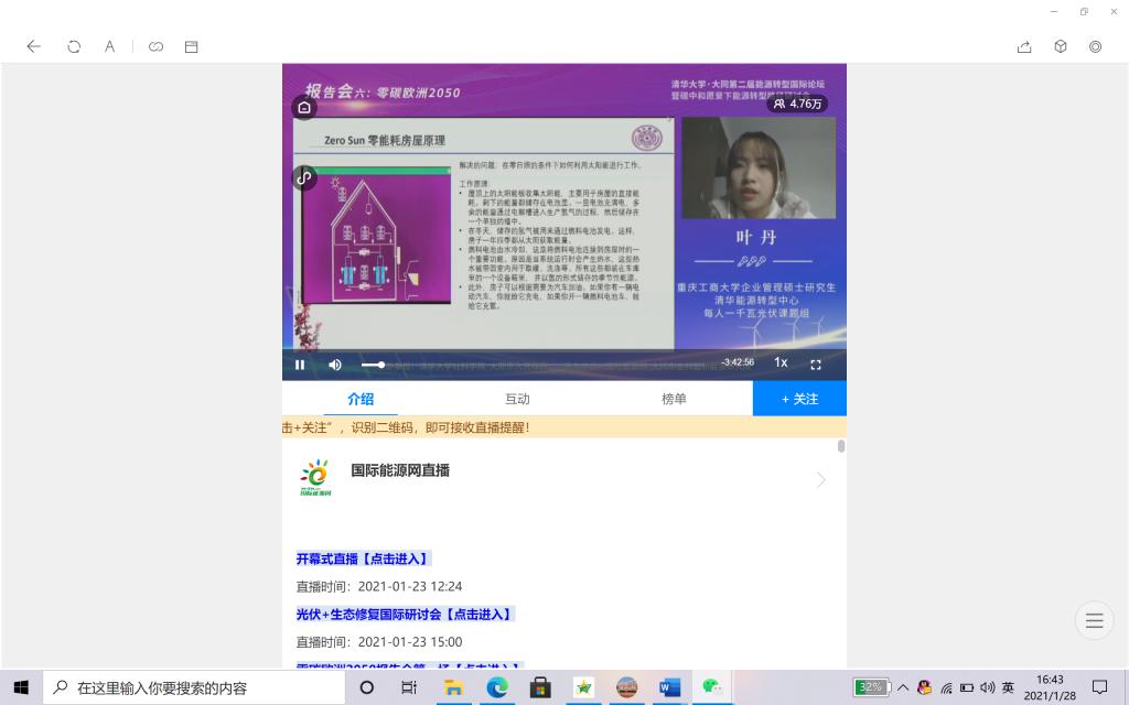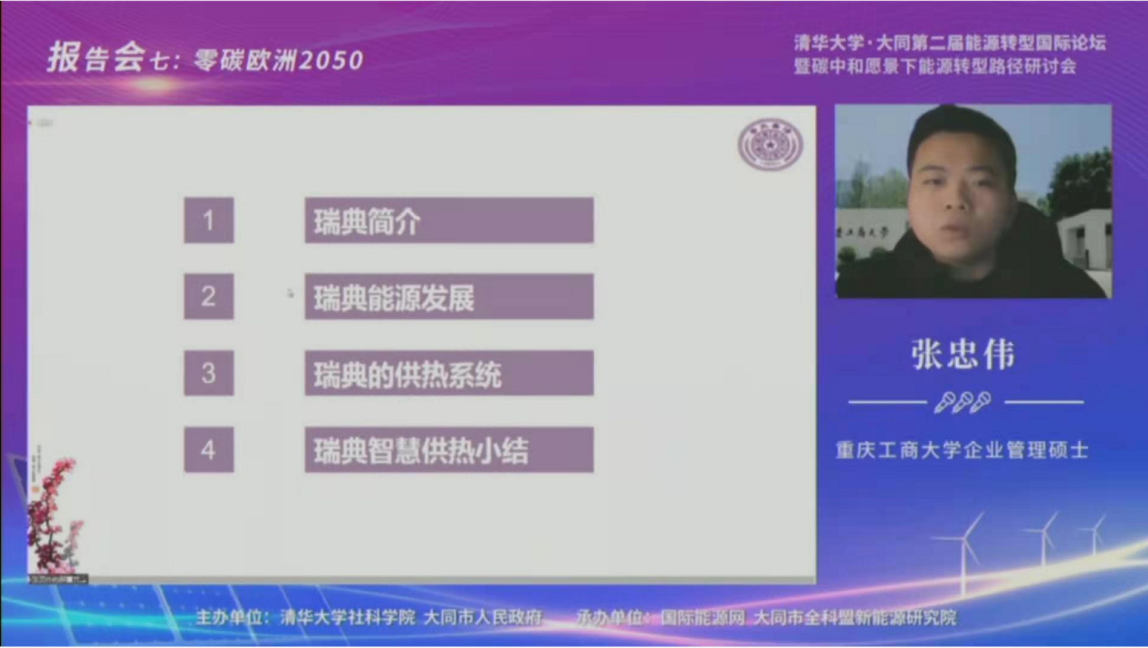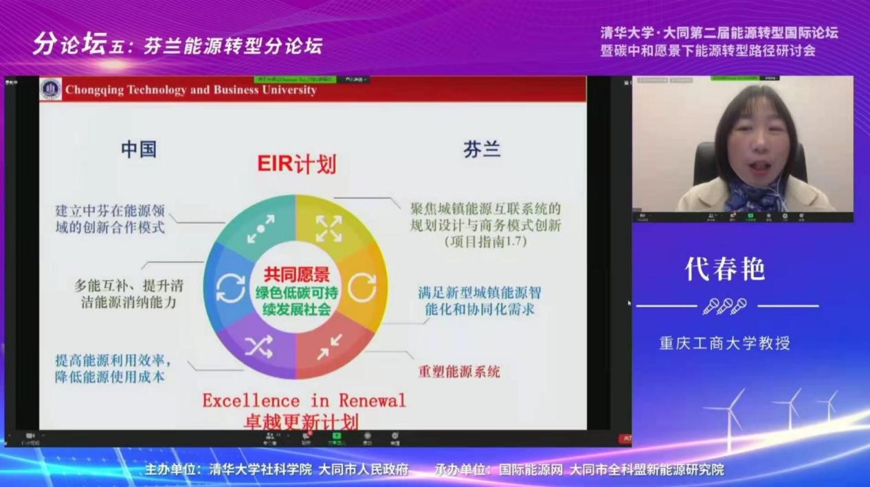2021年1月23日到1月31日,清华大学·大同第二届能源转型国际论坛暨碳中和愿景下能源转型路径研讨会顺利召开。本次论坛由清华大学社科学院、大同市人民政府主办;北京国际能源专家俱乐部、亚洲开发银行能源部门、北京大学能源研究院、中国科学院电工所联合主办;隆基股份、通威集团、正泰集团、中来股份协办;国际能源网、大同市全科盟新能源研究院承办。此届论坛在山西大同设立主会场,并面向全球直播,共举办11场专题论坛和11场报告会,累计观看直播人数达114.66万。HAHA体育代春艳教授主持的国家重点研发计划政府间合作专项“EIR计划-新型城镇能源互联系统研究与试点应用 ”(项目编号:SQ8YFE196500)项目组(简称EIR计划项目组)深度参与了此次论坛。