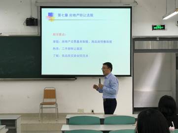 2021年04月12日下午,学院第十一次课程思政系列公开课在博智楼07107举行,此次公开课由梁桂保老师主讲,课程主题是“房地产转让制度与法规”。HAHA体育书记邓德敏、副书记陈春洁、教学督导饶扬德教授参加了此次教学观摩活动。