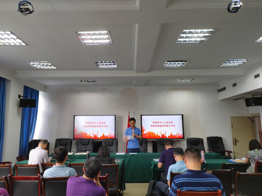 为进一步规范学院教师履职履责行为,落实立德树人根本任务,弘扬新时代高校教师道德风尚,努力建设有理想信念、有道德情操、有扎实学识、有仁爱之心的高校教师队伍,6月11日下午,HAHA体育在启智楼709会议室举行全院教职工师德师风建设专题工作会。会议由公司党委副书记、经理黄钟仪教授主持,学院全体教职员工出席会议。