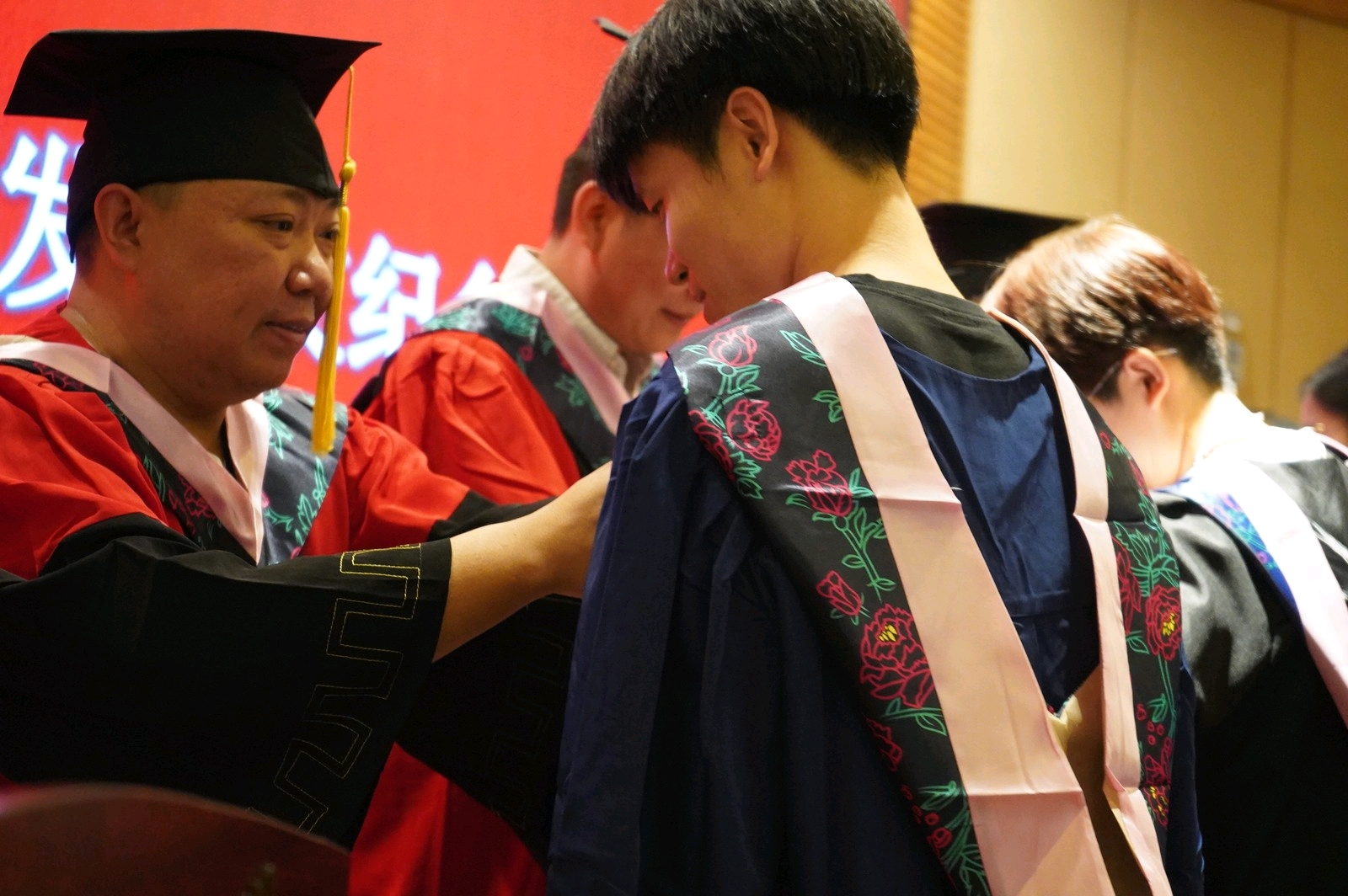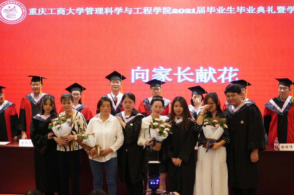 今日学业有成,离不开老师的谆谆教诲,离不开父母的辛勤付出。临别之际,学院毕业生为教师代表以及家长献上了“感恩”鲜花,表达了全体毕业生对老师和家长的感谢。一束束鲜花承载着员工对老师和家长最真挚的爱,师生之情永存,亲情之爱永远。