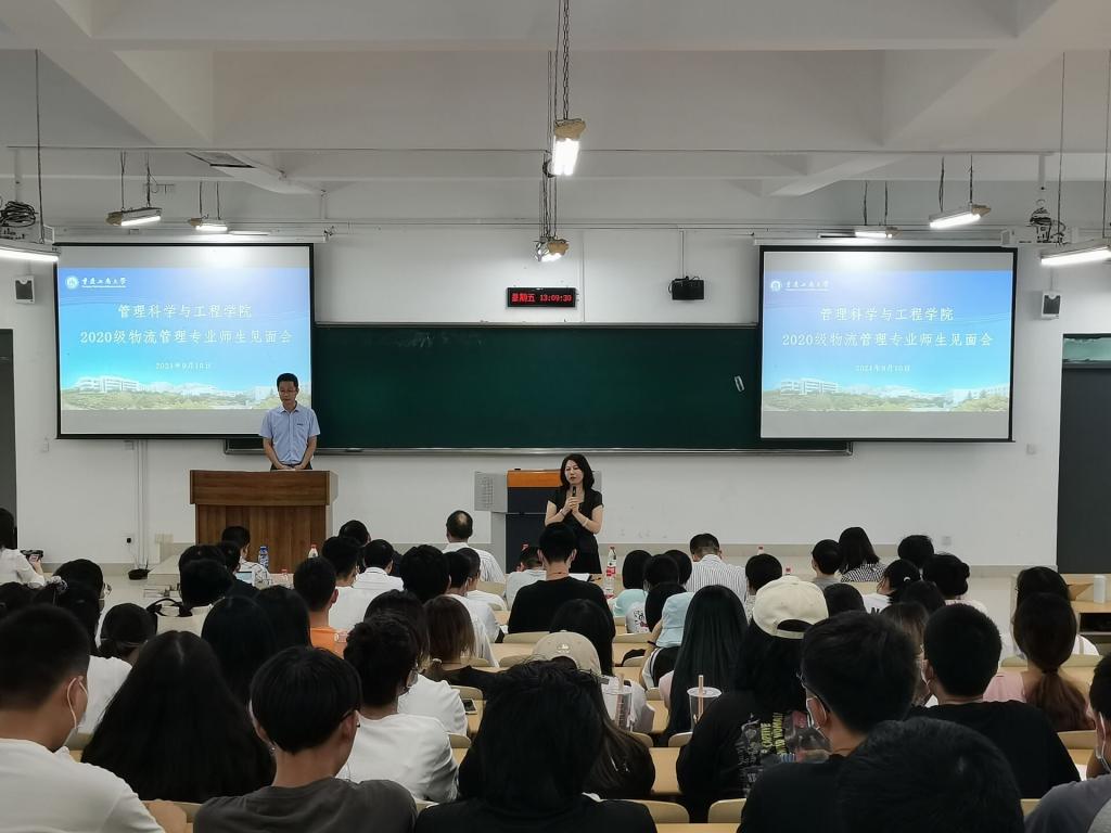9月10日下午,HAHA体育2020级物流管理专业师生见会面在博智楼221教室成功举办。公司党委书记邓德敏,经理黄钟仪,副经理陈久梅、詹川,学院副书记陈春洁,以及物流专业所有专业教师和辅导员参加了见面会,会议由陈春洁主持。
