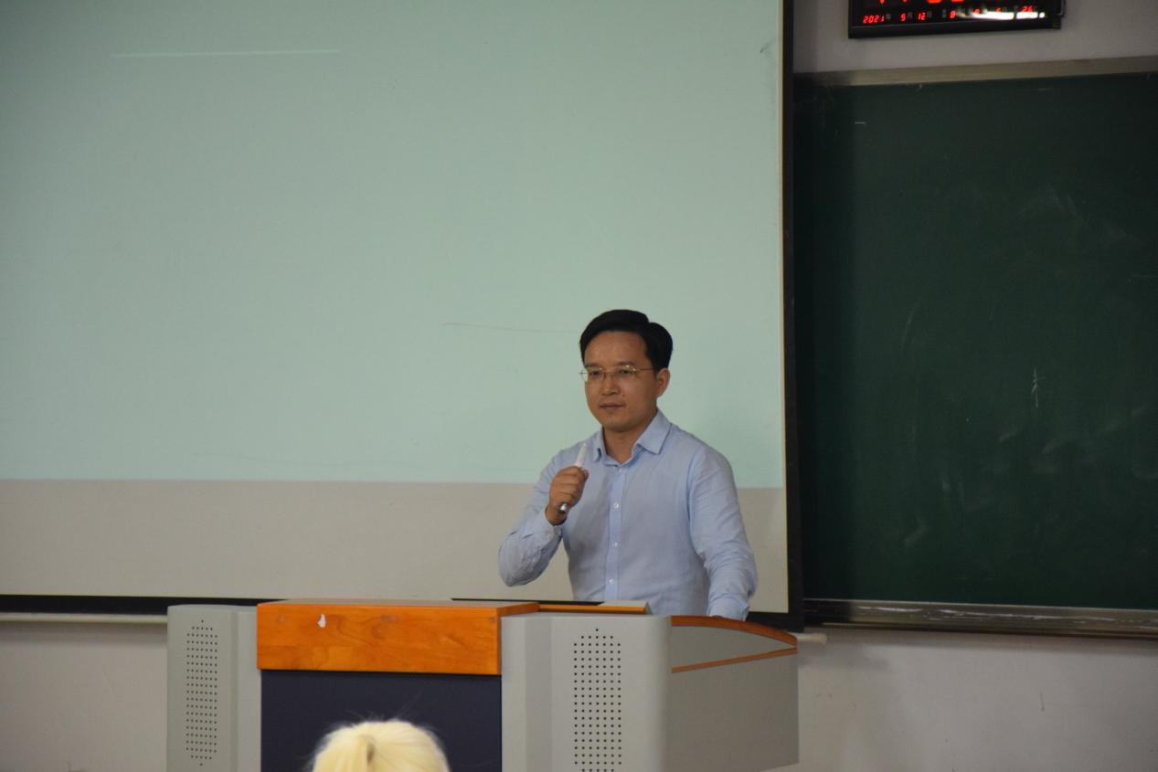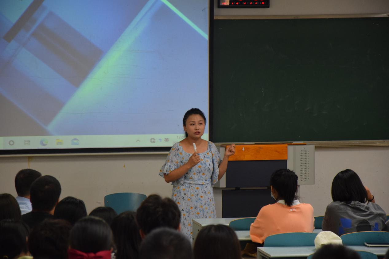 下午3点50分,入学教育正式开始。首先梁桂保老师表达了对全体工程管理新生的热烈欢迎。她从专业课程开设、团队力量与结构、培养目标与方向、专业就业前景,优秀员工展示等方面对工程管理专业进行了全面介绍。为了引导同学们全面发展同时做好未来规划,梁老师给同学们提出了两点建议:一是要尽早确立自己的学习目标,明确自身的职业发展方向;二是培养一个兴趣爱好,尽可能将其转化为特长。