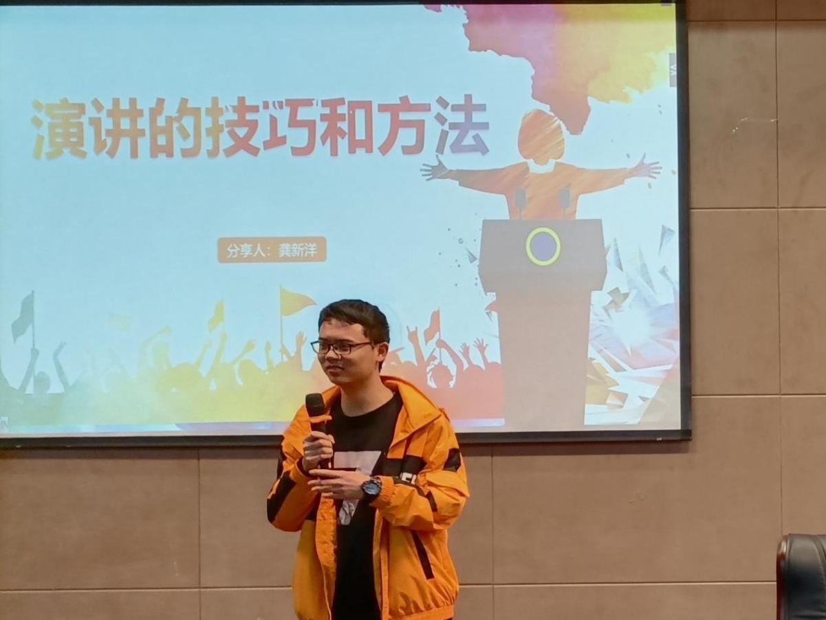 随后,龚新洋团长为大家讲述了关于演讲的技巧和方法,分别是演讲的前期准备、演讲的服饰和发型、演讲体态的构成,以及演讲的技巧四个部分。他结合实例示范、案例分析,形象生动地将培训要点贯通始终,深入浅出,同学们受益匪浅。