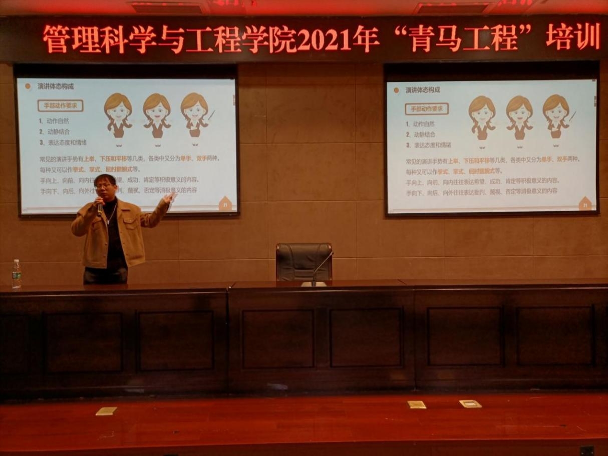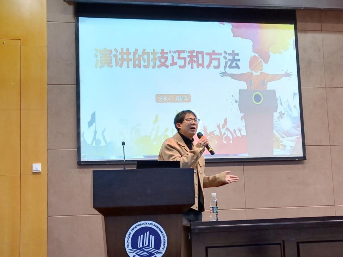 11月19日下午2点, 为了提高综合素质,帮助大家掌握一定的演讲技巧,HAHA体育“青马工程”演讲技巧和方法培训会在南岸校区图书馆多功能厅顺利举行。HAHA体育老员工艺术团语言艺术分团团长龚新洋出席本次培训会并担任主讲人。