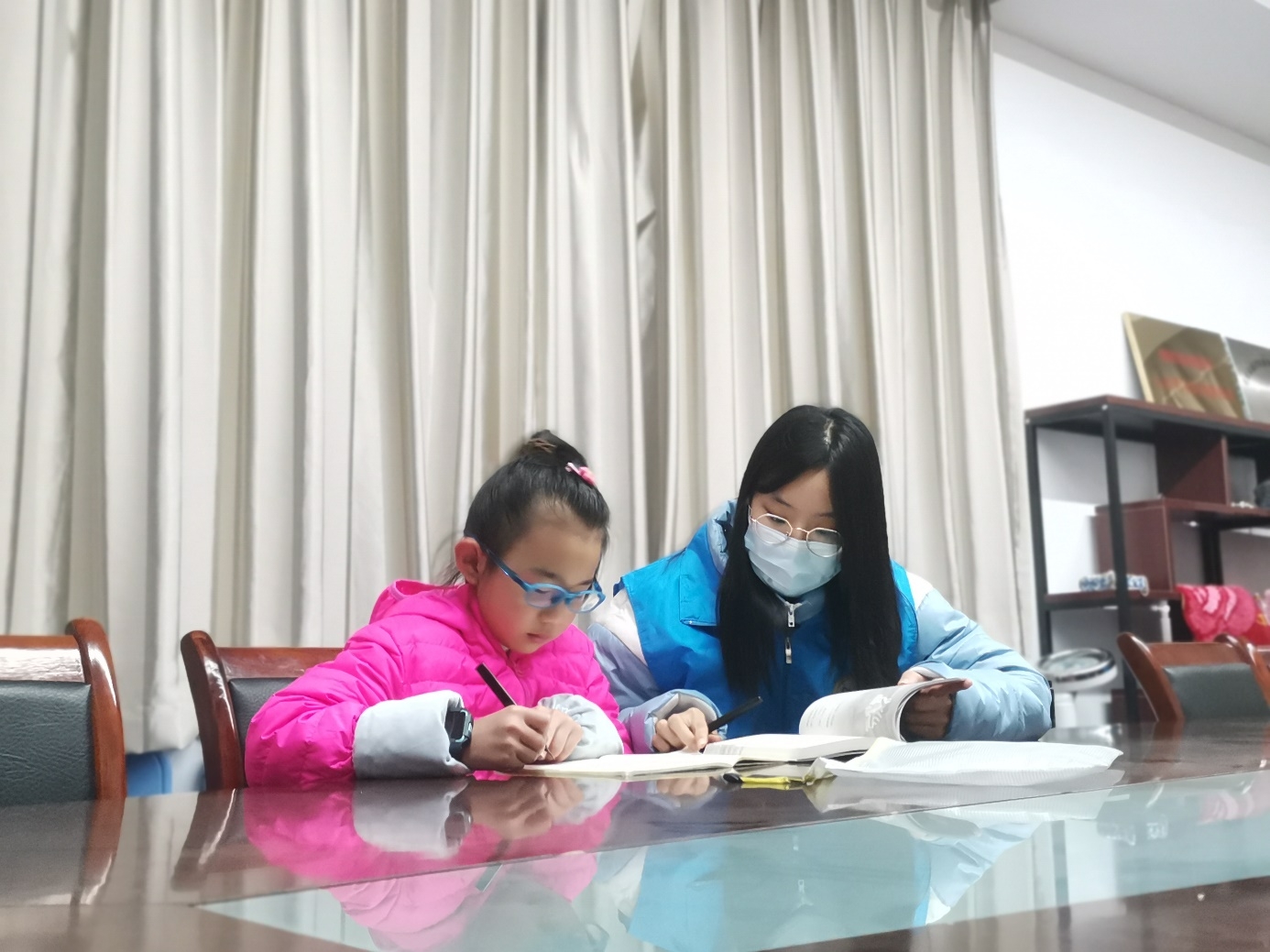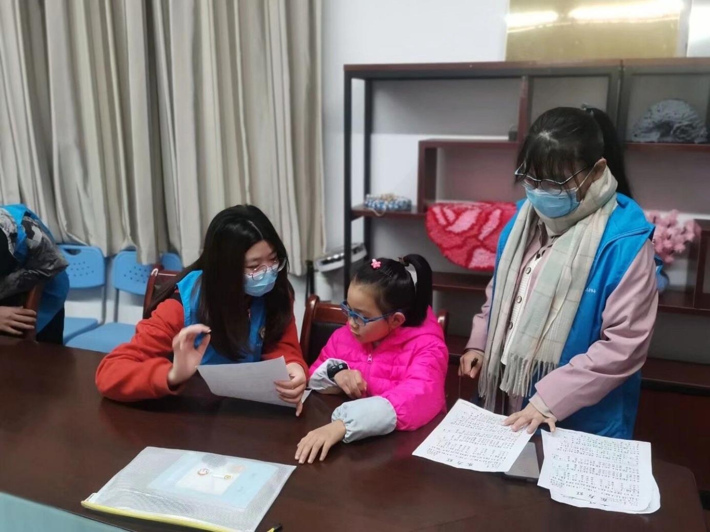 此次活动分为学习辅导、红色歌曲教学两个部分。在学习辅导过程中,志愿者们一对一辅导小朋友的周末作业。在面对一些小朋友们不理解的地方时,志愿者结合自身的学习经验,将解题技巧以及答题方式以更加通俗易懂方式教给他们。志愿者们亲身示范,一步步分析解答,和小朋友们共同探讨,让他们发现学习的有趣之处,并在一定程度上帮其找到适合自己的学习方式。