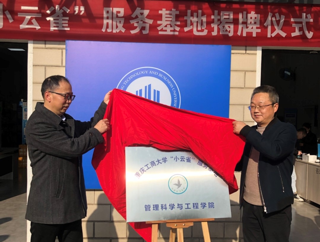 伴随着热烈的掌声,学校学工部部长、员工处处长申卫东和管工公司党委书记邓德敏共同为“HAHA体育小云雀服务基地”揭牌。