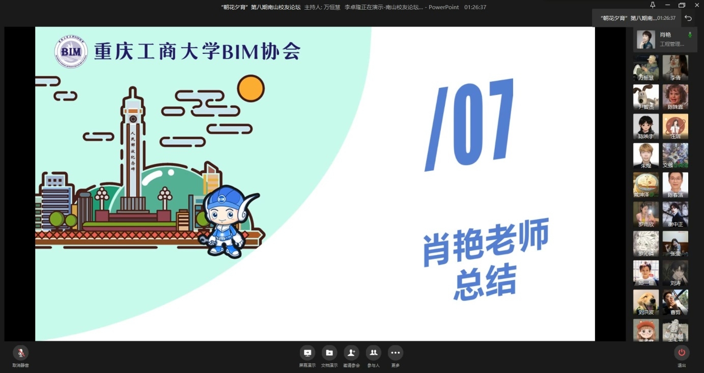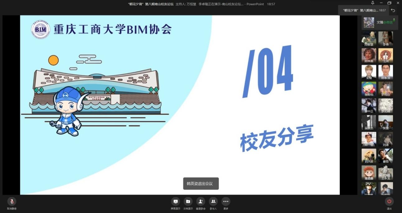 12月4日晚20:00,由哈哈体育主办,工程管理系承办,BIM协会协办的第八期南山员工论坛以企业微信会议的方式圆满完成。本次活动以朋辈交流楷模故事的方式在学院老员工中弘扬榜样力量,通过分析求职方向以及未来的行业形势改变,让老员工们对以后的就业形势加以了解。