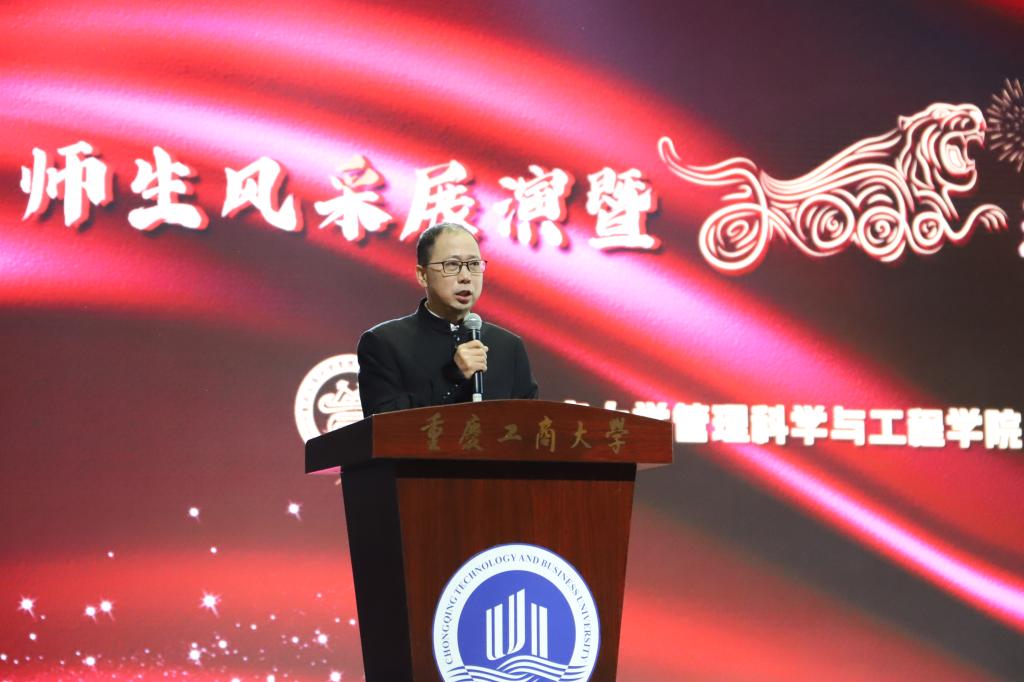 晚会正式开始,先由委书记邓德敏致辞。邓书记表达了两点感谢,感谢各职能部门领导、广大员工与家长对学院发展的关心、支持;感谢全体师生一年来的辛勤工作、努力学习。同时,他也表示“努力为高质量发展贡献管理力量”一直以来都是管工人的追求。在新征程上每一位管工人都应该加满油,鼓足劲,去抒写管工新的华章!