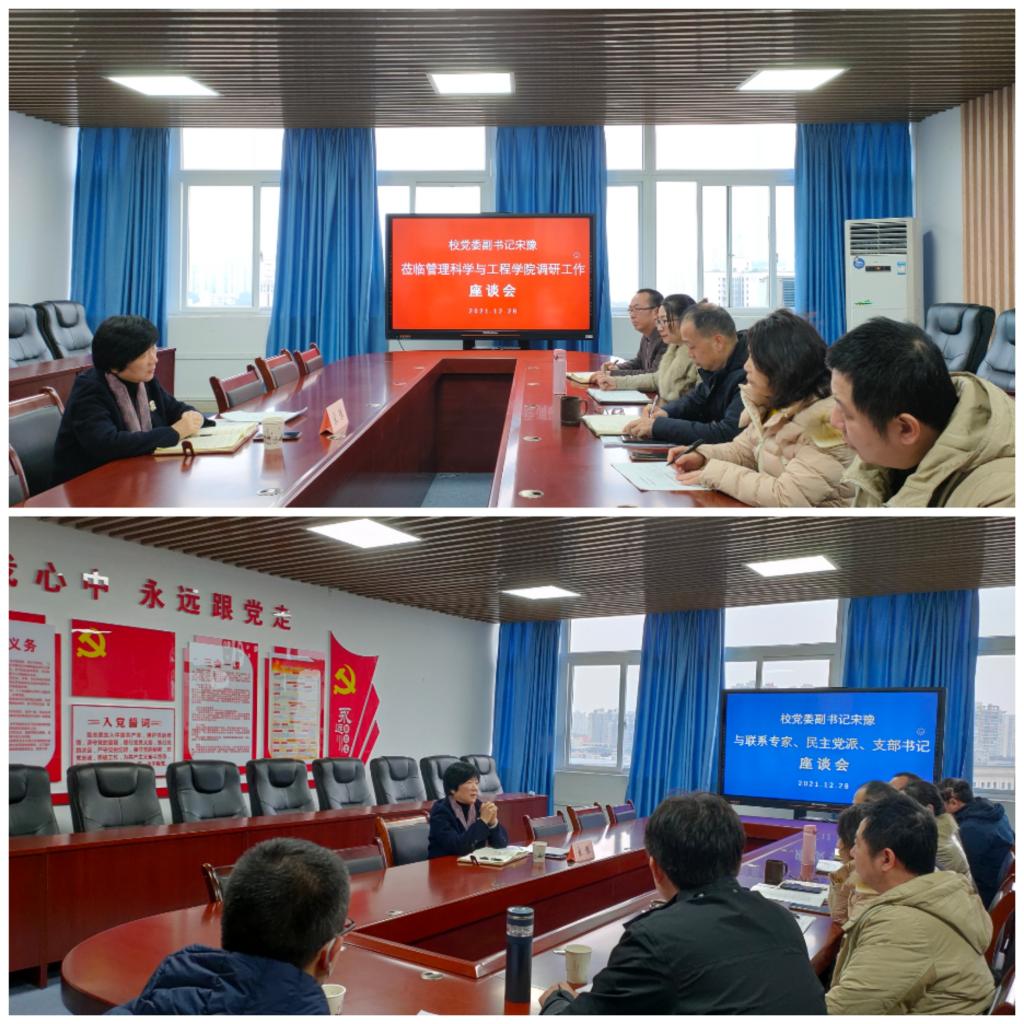 2021年12月28日上午,公司党委副书记宋豫莅临HAHA体育,调研学院工作情况,与联系专家、支部书记、民主党派成员进行交流座谈。HAHA体育全体班子成员,宋豫副书记联系的曾波教授、周愉峰教授、学院教工二支部书记、电商系主任唐国锋参加了本次座谈会。