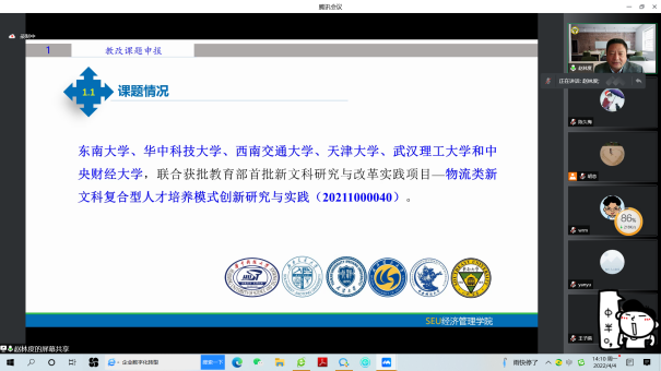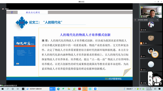 随后,学院物流管理系主任张军教授结合国家一流专业物流管理专业建设情况以及自己申报获得重庆市重点教改项目的体会,重点分享了公司产品改革研究项目申报选题、研究方向、内容撰写等方面的宝贵经验,特别指出了基于当前国家地方重大需求思考自己专业、课程人才培养的着力点的重要性。