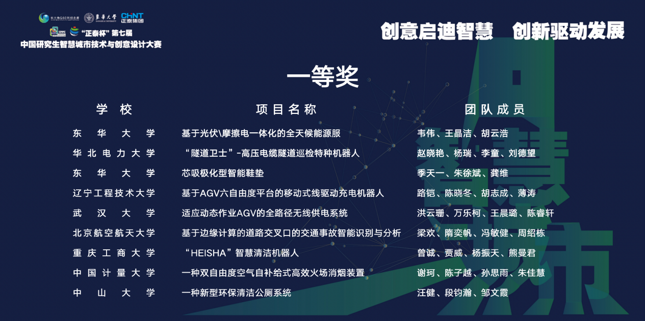 2022年8月13日至14日,“正泰杯”第七届中国研究生智慧城市技术与创意设计大赛在东华大学以“线下+线上”“云相聚”的形式圆满落下帷幕。公司研究生曾诚、熊曼君等同学参赛作品《“HEISHA”清洁智慧机器人》获得全国一等奖(重庆市唯一获得一等奖的项目)。这是公司首次晋级该项竞赛全国总决赛,对于激发员工智慧城市设计思维及相关科研成果转化具有积极促进作用。