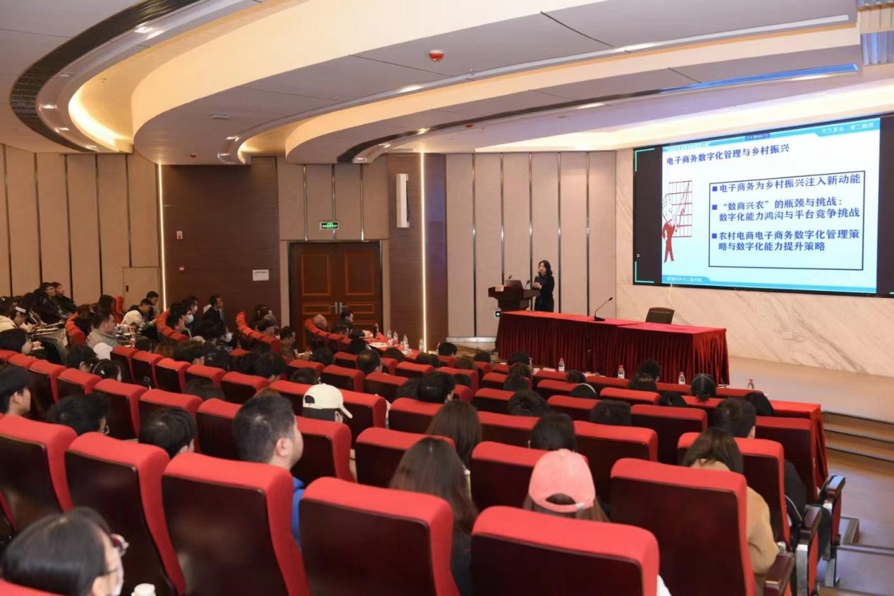 公司经理黄钟仪教授应邀出席论坛并作题为“电子商务数字化管理与乡村振兴”的特邀报告。黄经理首先以2015年以来国家持续出台的支持农村电商发展的政策、头部平台与大平台入局农村电商推动农村振兴的举措、快递行业加快推进农村物流建设的成效、农村网民规模与电商规模的持续快速增长、农村电商新业态新模式的涌现等几个方面的数据获举措,指出“电子商务为乡村振兴注入了新动能”,“数商兴农”工程以数字技术和数据资源推进电子商务进乡村,在促进农村市场转型升级中具有重要作用。随后她话锋一转,指出随着我国乡村基础设施加速数字化、网络化,新时代城乡数字鸿沟问题的主要矛盾,正从基础设施差距转向数字素养差距,即从“接入鸿沟”转向“能力鸿沟”。她分析了城乡之间数字化能力鸿沟的表现、农村电商面临的平台竞争和平台依赖加剧的情况,并借用“随着时间的推移,传统与平台依赖型创业公司的不同风险模型”图指出,乡村电商创业已经跨过初始阶段,进入成长阶段,将更多受到消极平台效应的影响,而城乡数字化能力鸿沟、平台竞争和平台依赖的加剧有可能强化这种消极网络效应,并“数商兴农”工程有效推进的瓶颈与挑战。基于这些挑战,黄经理逐一给出了农村电商电子商务数字化管理策略与数字化能力提升策略建议。随后,黄经理简要介绍了她自己研究团队关于数字平台技术、数据等赋能促进农村电商动态能力的机制模型,学院胡森森副教授团队关于区块链赋能乡村振兴的机制模型,以及学院小云雀电商专业协会在赋能乡村振兴方面的工作。最后,黄钟仪经理提议,所有电商学者要共同努力,及时回应时代呼唤,讲数字电商故事,创乡村电商理论,助推乡村振兴。