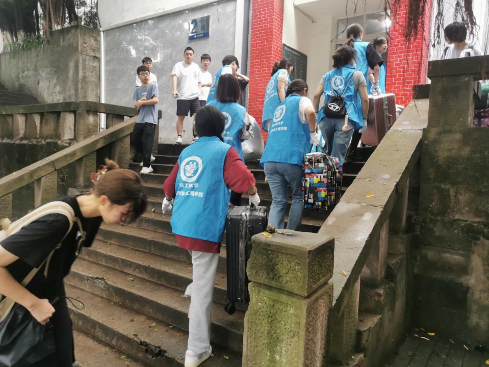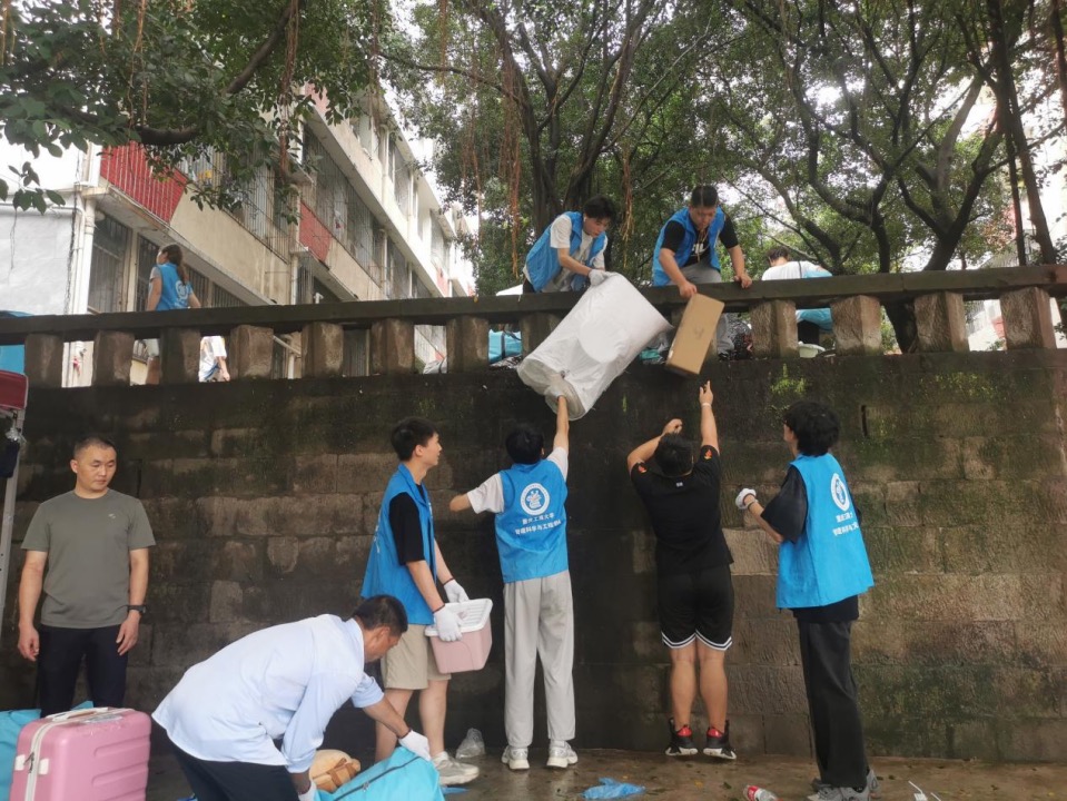 通过学院党员服务站和楼管会征集志愿者们在此次搬迁工作中发挥了关键作用。随着第一辆装满行李的班车抵达,志愿者们开始了繁忙的工作,他们积极参与、广泛组织,协助同学们快速从卸车点到楼栋转运行李。有效地避免了因行李过多而堵塞卸车点的现象发生,同时为同学们提供了明确的指引,确保了搬运过程的顺畅和高效。