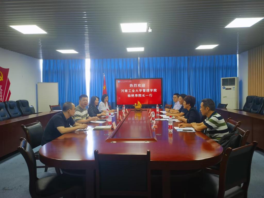 黄钟仪经理对河南工业大学管理学院一行表示热烈欢迎,詹川副经理从学院得历史沿革、团队队伍、专业课程建设、学科科研工作、对外合作交流等方面对学院的情况进行了简要介绍。河南工业大学杨艳萍经理介绍了管理学院的基本情况,并简要说明了调研交流的目的。