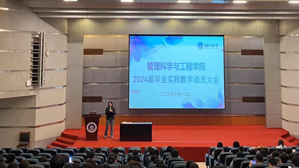 2023年10月12日中午,HAHA体育在HAHA体育南岸校区7100报告厅召开2024届毕业实践教学动员大会。会议由学院教学副经理陈久梅主讲。2024届物流管理、电子商务、工程管理、信息管理与信息系全体员工,信息管理与信息系副系主任梅远飞,学院教务办胡恋参加此次会议。