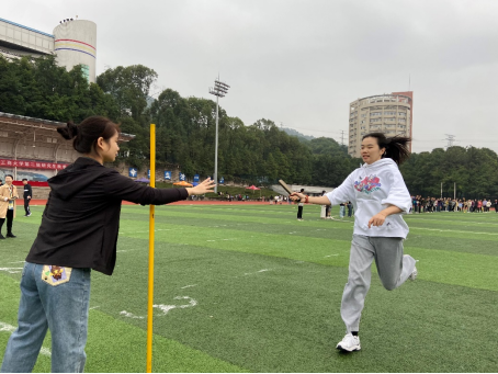 本次趣味运动会设置有集体项目和个人项目。集体项目包括迎面接力(20×50米)、旋风接力跑、集体“8”字跳绳、二人三足等项目。个人竞技比赛包括双摇跳绳、跳远、实心球掷远等田赛项目和100米、400米、4×100米等径赛项目。在迎面接力跑中,研究生辅导员及研分会主管老师蒋幸福、研究生导师杨家权率先带领HAHA体育的同学组成联队,与代表各院系参赛的运动健儿同台竞技,为当天的竞技比赛拉开帷幕。师生们在赛道上驰骋,在场地中拼搏,斗志激昂,通力合作,挥洒青春汗水,展现运动风采。