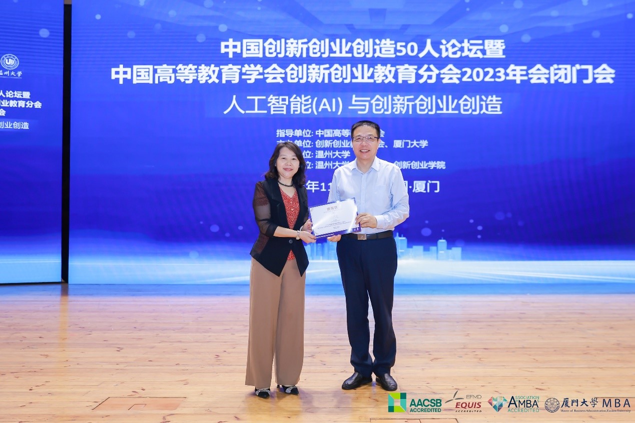 2023年11月4日~5日,中国高等教育学会创新创业分会2023年会暨“智慧引领·生成未来”创新创业创造主旨论坛在厦门大学举行。大会设有一个主旨报告和8个平行论坛。中国高等教育学会创新创业教育分会理事长、教育部高等学校创新创业教指委副主任、上海财经大学常务副董事长徐飞教授主持了开幕式,中国高等教育学会副会长、江苏政协常委、教委体委员会主任葛道凯、福建省委教育工委委员、省教育厅党组成员、副厅长吴伟平、厦门大学董事长张宗益致辞;中科院大学、发展中国家科学院院士汪寿阳教授、发展中国家科学院院士洪永淼教授、清华大学陈国权教授、深圳大学王序进院士等做了主旨报告。