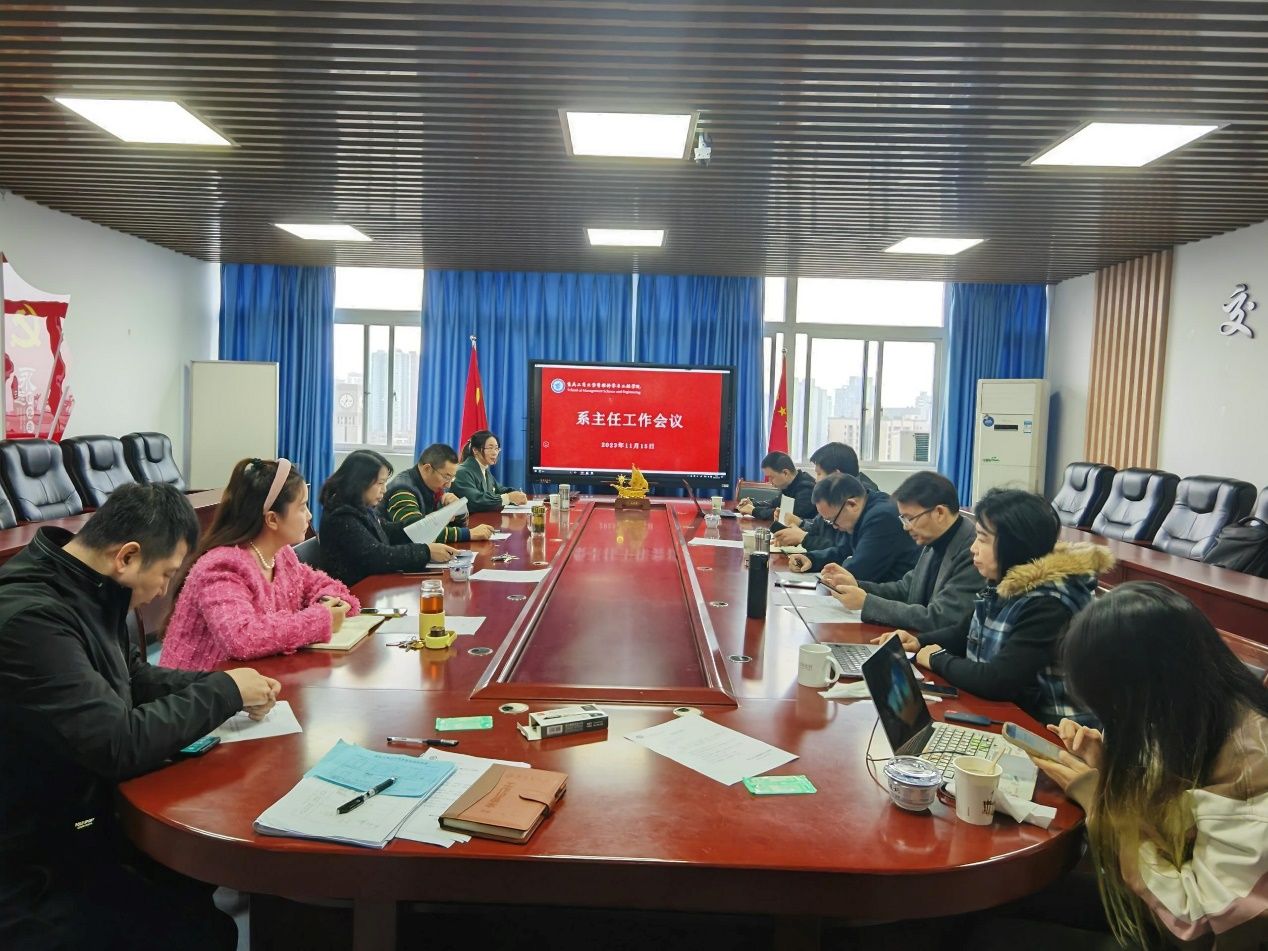 会议首先由物流管理系主任张军、信息管理与信息系统系主任涂智寿/副主任梅远飞、电子商务系主任唐国锋/副主任文悦、工程管理系主任肖艳/副主任梁桂保,轮流汇报了前半学期系各项工作开展的情况。汇报内容涵盖专业建设、课程建设、科研工作、人才培养、日常教学、特色工作等方面,各系对取得的主要成绩进行了总结,对存在的问题进行了剖析,并提出改进措施。汇报结束后,学院领导班子与系主任围绕专业建设、学科发展、人才培养等话题进行了广泛的交流和讨论。