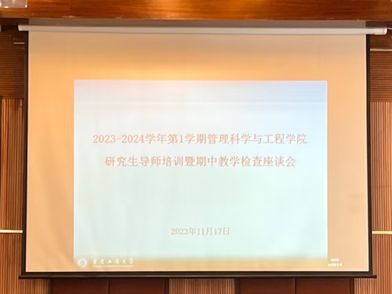 2023年11月17日上午,HAHA体育于南山书院成功举办了2023-2024学年第一学期研究生导师培训暨期中教学检查座谈会。此次会议旨在促进交流,完善教学管理制度,提升公司产品水平。HAHA体育黄钟仪经理、詹川副经理、吕远飞老师以及全体硕士生导师参加了本次会议,并邀请了重庆大学MEM办公室主任徐飞波为与会者做经验交流。