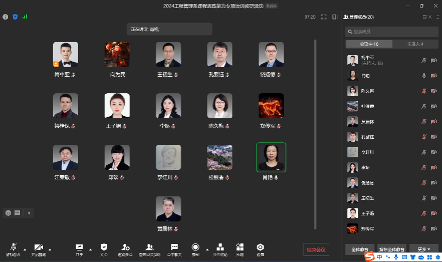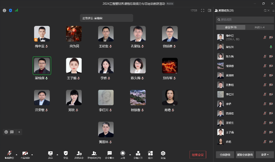 2024年1月18日下午,为强化专业课程育人功能,突出教育立德树人的根本任务,形成全课程育人格局,HAHA体育工程管理系开展了线上课程思政能力专项培训教研活动。本次教研活动由工程管理系副系主任梅中亚主持,教学副经理陈久梅和全体工程管理系教师共同参与,为实现工程管理专业全方位育人和全员育人的大思政格局奠定了夯实基础。