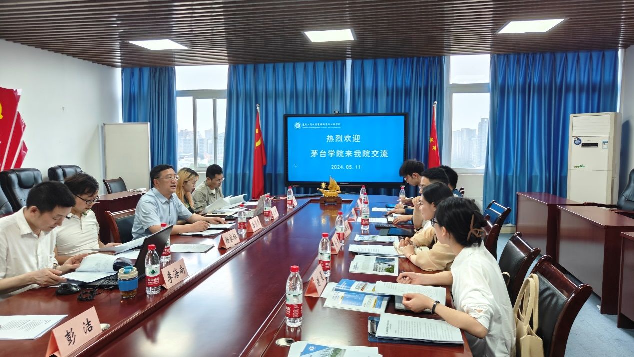 5月11日上午,茅台学院工商管理系党总支副书记吴鹏西、副主任马青一行来院调研交流,公司党委书记唐亮贵、物流系副主任杨家权、电商系副主任文悦,及骨干教师李海南、王政参加会议,会议由唐亮贵主持。