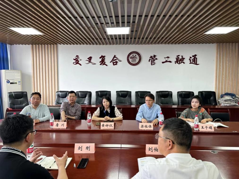 黄钟仪经理对刘刚秘书长一行表示了热烈欢迎,并向他们详细介绍了学院的专业设置、MEM等研究生教育项目,并表示愿意与商会加强合作,共同开展研究生教育、行业培训等。