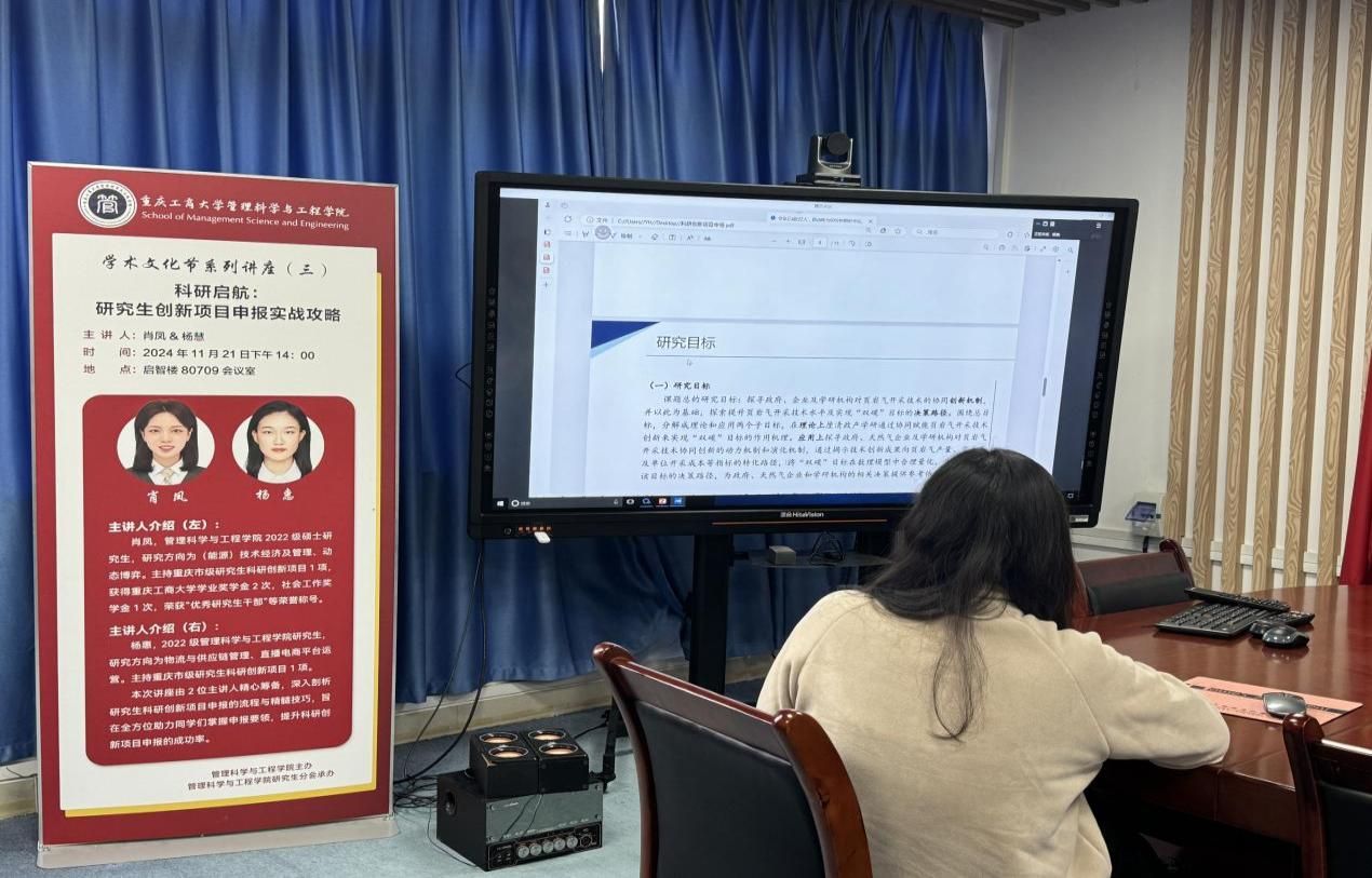 2024年11月21日,为助力本学院研究生掌握创新项目申报的要领,提升科研创新项目申报成功率,HAHA体育开展研究生创新项目申报实战分享会,会议于启智楼80709室圆满举行。主讲人为肖凤同学和杨慧同学,她们分别介绍了项目申报过程中的注意事项和申报书书写要点,由HAHA体育24级全体学硕同学参会。
