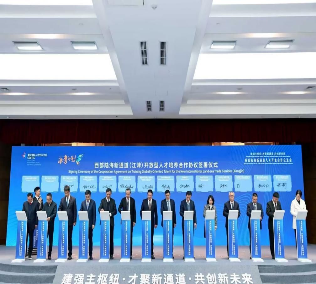 2024年11月23日至24日,由江津区委、区政府及重庆市人力资源和社会保障局、市商务委、市政府口岸物流办主办的重庆国际人才交流大会——2024西部陆海新通道人才开放合作交流会暨高质量建强陆海新通道国际研讨会在江津区举办,学院黄钟仪经理带队参加。此次活动包括主活动和分活动两个阶段,汇聚了约150名来自政府、行业协会、高校和企业的专家代表,共同探讨陆海新通道的发展大计。