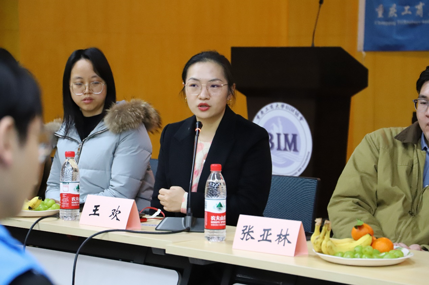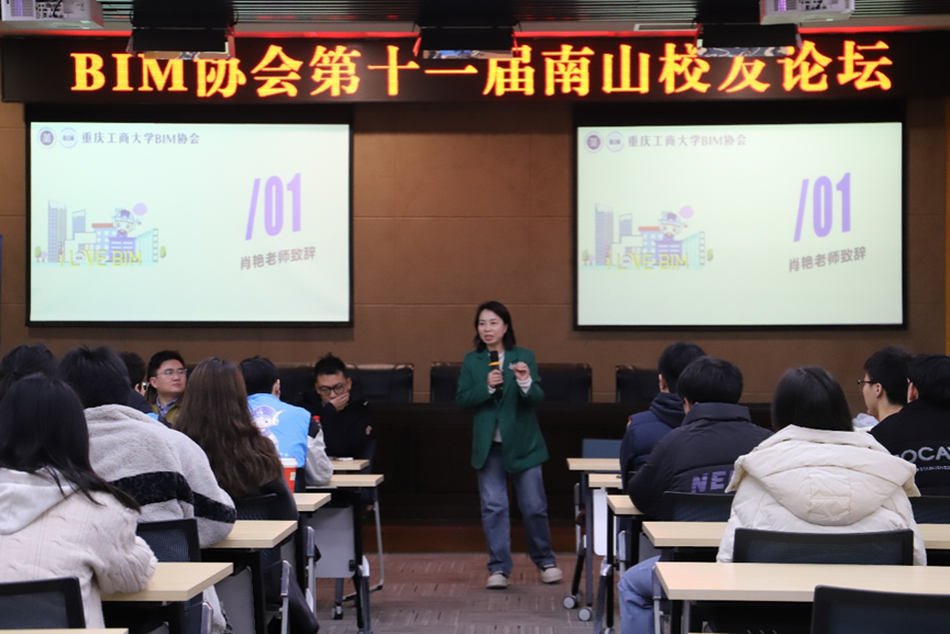 会议伊始,由肖艳老师发表讲话。她首先向大家介绍了各特邀嘉宾,并对他们的到来表示欢迎,接着引出本次活动的主题——转型,同时向各位同学发出期望,希望同学们可以从学姐学长的分享中获得启发,主动寻求变革,逆境勃发,不断努力,不断学习。随后梁经理致辞,他强调开展员工交流会的必要性,提出工程管理专业学子在当今经济环境下面临的难题和在困难中存在的机会,期望同学们在本次交流会中获得工程管理专业转型的一些经验,并向各位员工的到来再次表示感谢。