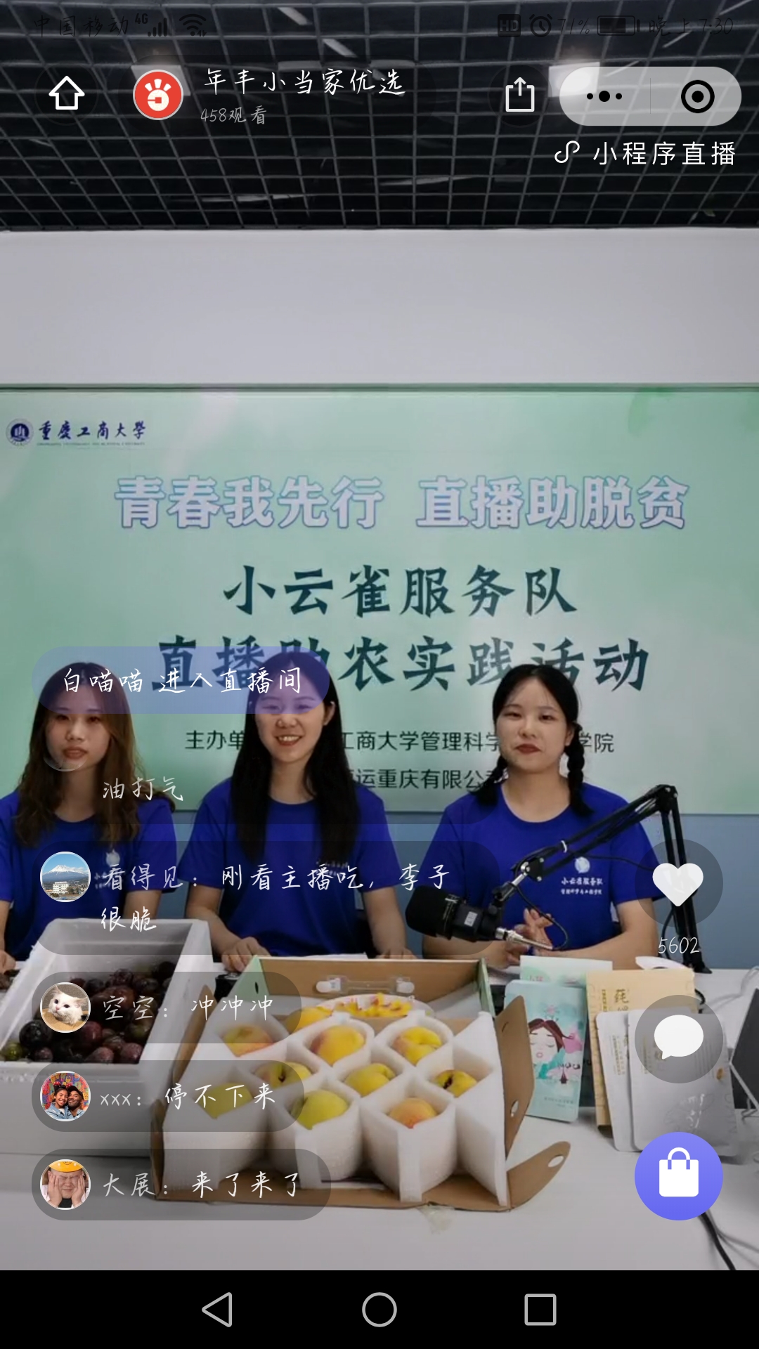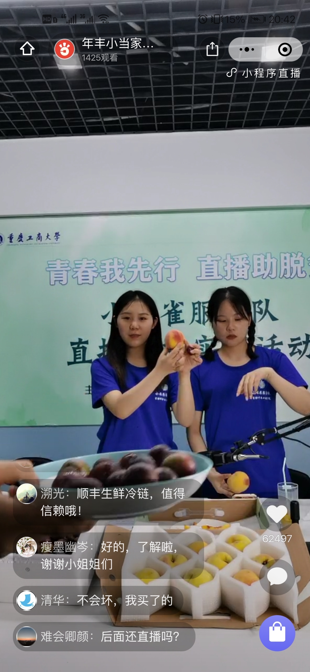本次直播吸引了近两千人观看,获得近七万点赞,短短一个小时成功售卖25826.2元。小云雀电商助农实践团结合自己所学投身打赢脱贫攻坚战,用实际行动促进农产品的销售,得到农户、农产品企业和顺丰重庆的高度肯定。首次直播的成功也激励着小云雀电商助农实践团的老员工们。他们还将继续提升自己,在暑假期间,广泛深入田间地头,运用自身所学,为更多贫困地区产品打开市场,为助力脱贫攻坚贡献力量。