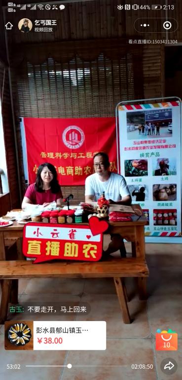 调研结束后,委书记邓德敏和经理黄钟仪指导员工开展电商直播助农活动,并亲自上场为玉山村农产品进行宣传。