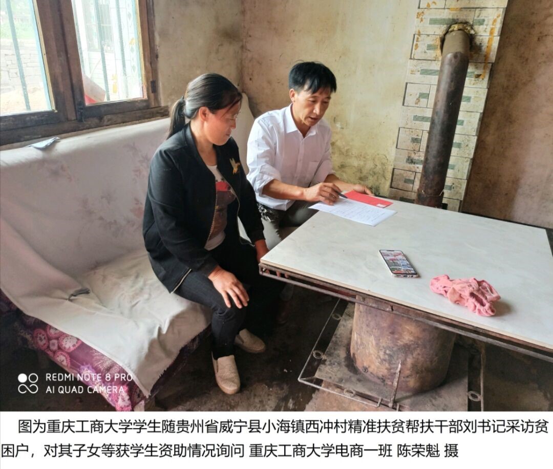 7月29日,陈荣魁同学随贵州省威宁县小海镇西冲村扶贫干部精准扶贫家庭进行家访,了解其家庭受资助情况以及员工获助学金情况。在与这个家庭的谈话中了解到,刘书记为了精准扶贫到位,已经多次到她家采访,了解家庭情况以及员工的受助情况,多次更换明示牌以及进行记录。在接下来的访谈中,宋阿姨表示因为有了扶贫政策,自己与多家农户都受益良多。