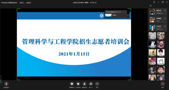 为推进学院招生工作,增强学院专业的影响力,充分发挥员工的积极性和能动性,HAHA体育招募寒假招生宣传员工志愿者,拟在各地区开展招生宣传工作。1月15日下午,HAHA体育召开线上招生工作培训会,对本次招募的员工志愿者们进行了系统培训。培训会由学工办主任古纯玉主持。邓德敏书记、黄钟仪经理、各系主任和副主任、专任教师代表以及招生志愿者们参加了本次会议。